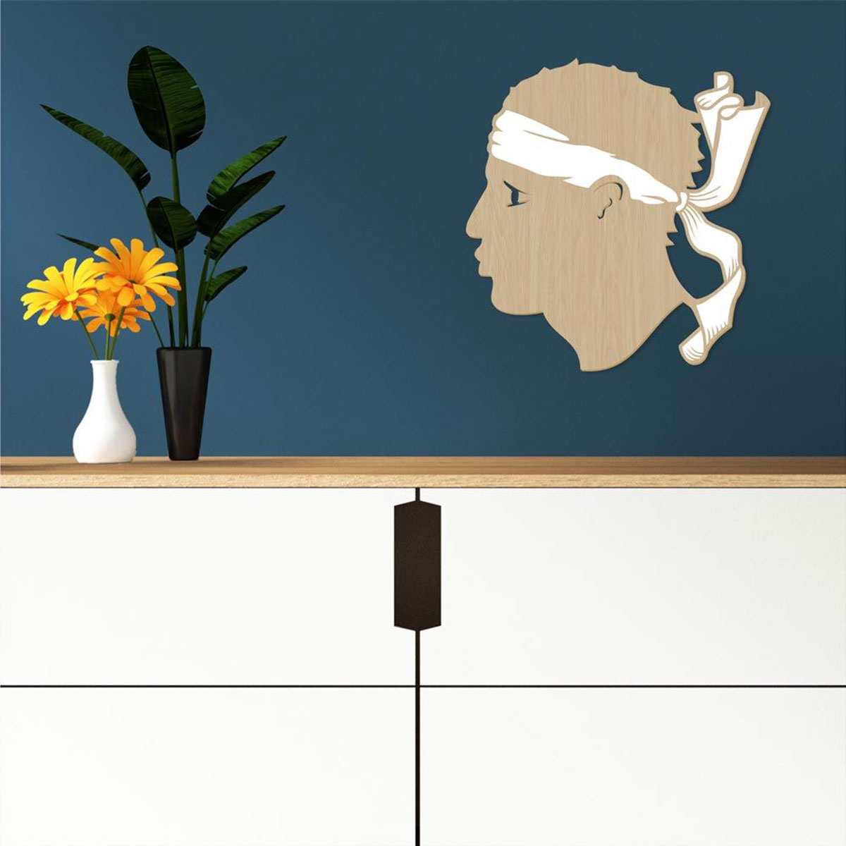 Il s’agit d’un symbole emblématique de la Corse, ici revisité en version décorative moderne pour habiller vos murs avec élégance.