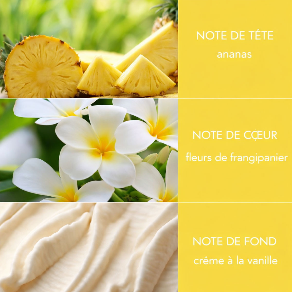 🌞✨ Diffuseur de parfum Délice d’été – 70 ml – Heart & Home 🏷️ Fabricant : Heart & Home 🧴 Contenance : 70 ml 📦 Dimensions de la boîte : Hauteur 20 cm – Largeur 8 cm – Profondeur 7 cm 🕯️ Type : Diffuseur de parfum à bâtonnets (reed diffuser) 🌱 Formule : Fragrance vegan friendly 🔥 Diffusion : Sans flamme ⏳ Durée de diffusion : Jusqu’à 12 semaines 🎁 Présentation : Flacon en verre avec couvercle doré – Coffret cadeau avec fenêtre festonnée 🖤 Accessoires : Bâtonnets en fibre noire 🌼 Pyramide olfactive Note de tête : ananas juteux Note de cœur : fleurs de frangipanier Note de fond : crème de vanille Véritable invitation à l’évasion, le diffuseur Délice d’été capture la douceur des journées ensoleillées. L’ananas lumineux apporte une fraîcheur exotique et gourmande, le frangipanier dévoile un cœur floral délicatement tropical tandis que la vanille enveloppe l’ensemble d’une sensation chaleureuse et réconfortante. Son flacon en verre au design contemporain, surmonté d’un élégant couvercle doré, en fait un véritable objet décoratif. Grâce à la diffusion par bâtonnets, le parfum se diffuse en continu dans votre intérieur, sans flamme, pendant plusieurs semaines. Présenté dans un coffret raffiné prêt à offrir, il constitue une magnifique idée cadeau pour créer une ambiance estivale, lumineuse et élégante. 🎁 Contenu du coffret • 1 diffuseur 70 ml • Bâtonnets en fibre noire ⚠️ Conseils d’utilisation • Éviter le contact avec la peau et les yeux • Tenir hors de portée des enfants et des animaux • Ne pas allumer les bâtonnets • Ne pas poser sur surface vernie, peinte ou synthétique • Retourner les bâtonnets régulièrement pour relancer la diffusion • L’exposition au soleil peut altérer la couleur du parfum ⚠️ Informations de sécurité Parfum susceptible de provoquer une réaction allergique. Contient : Allyl cyclohexanepropionate, géraniol, hydroxycitronellal, linalool, acétate de linalyle, d-limonène, dl-citronellol. ❓ Combien de temps dure le diffuseur ? 👉 Jusqu’à 12 semaines selon la taille de la pièce et la fréquence de retournement des bâtonnets. ❓ Comment intensifier le parfum ? 👉 Il suffit de retourner les bâtonnets régulièrement. ❓ Le diffuseur fonctionne-t-il avec une flamme ? 👉 Non, la diffusion est naturelle et sans flamme. ❓ Est-ce une bonne idée cadeau ? 👉 Oui, grâce à son coffret élégant prêt à offrir. ❓ Quel type d’ambiance crée ce parfum ? 👉 Une atmosphère estivale, exotique et gourmande. mots clés : diffuseur de parfum ananas, diffuseur frangipanier vanille, délice d’été heart and home, parfum d’ambiance exotique, diffuseur sans flamme, diffuseur longue durée, idée cadeau maison parfumée, diffuseur vegan friendly