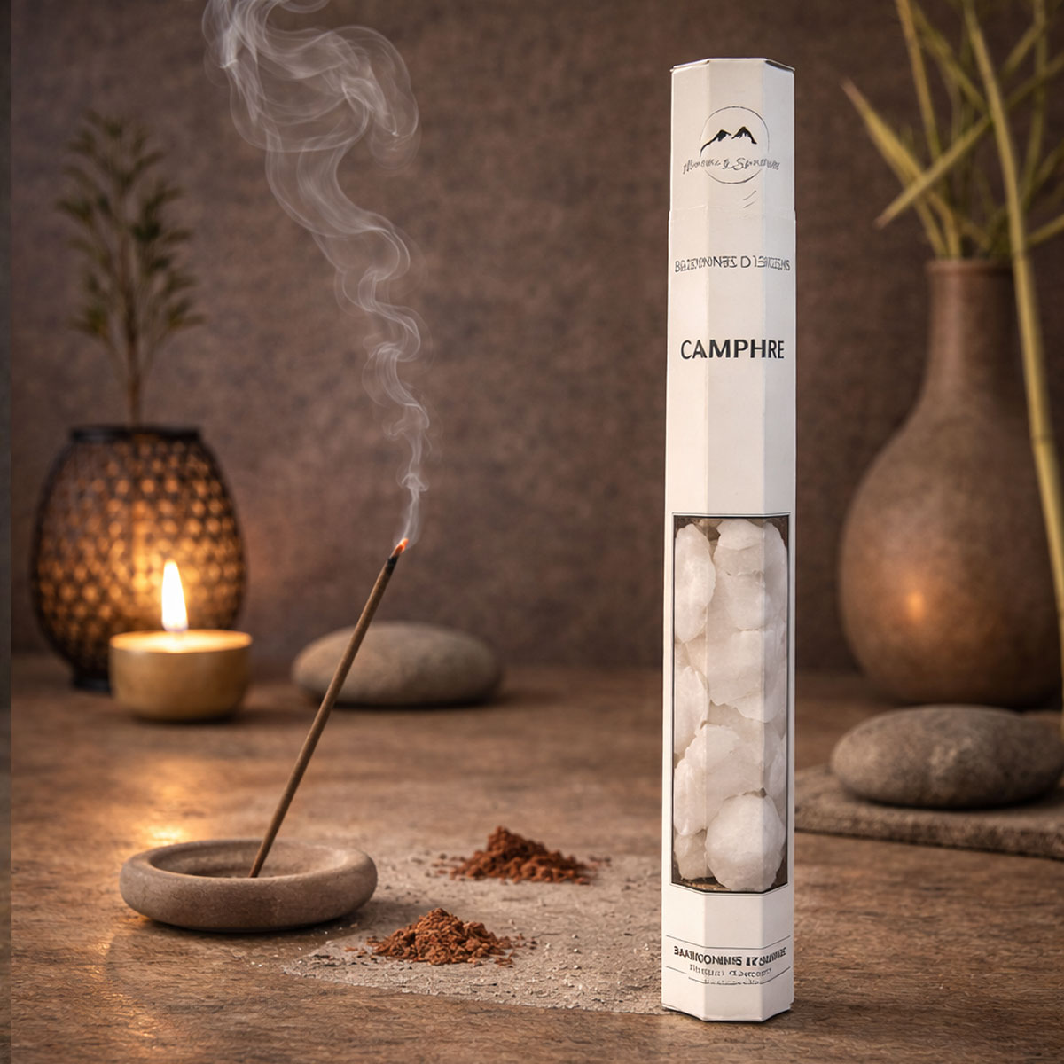 ✨ Encens Camphre – Boîte de 20 bâtonnets – Fabrication indienne 🌿 Parfum : Camphre 🙏 Utilisation : assainit les lieux chargés en énergies négatives, forte protection psychique 📦 Contenu : 1 boîte de 20 bâtonnets d’encens 📏 Dimensions boîte : hauteur 24 cm – largeur 3 cm – profondeur 3 cm 🌍 Fabrication : Inde 🧪 Composition / Ingrédients : Bâton de bambou, poudre de charbon de bois, poudre de bois naturelle (grade A1), poudre de colle naturelle (jicat / joss), poudre de kupam naturel (fixateur de parfum), parfum non toxique et bases naturelles. Cet encens au camphre diffuse une fragrance fraîche et purifiante traditionnellement utilisée pour nettoyer les énergies stagnantes et protéger l’équilibre psychique. Il aide à instaurer une atmosphère claire, saine et propice au recentrage intérieur. Mots clés : encens camphre, bâtonnets d’encens, encens purification, encens protection psychique, encens spirituel, encens méditation, encens naturel, encens indien, encens maison, encens bien-être, purification énergétique, ambiance zen