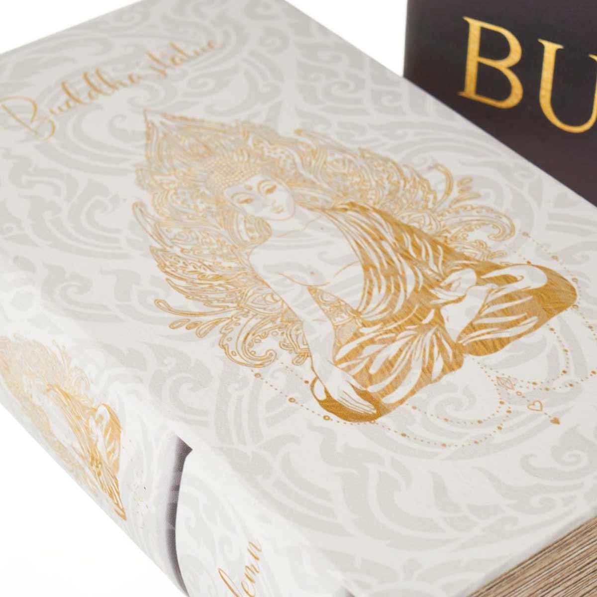 Ensemble de 2 boîtes en forme de livres bouddha Licence : Zen Couleurs dominantes : Noir et Blanc Forme : rectangulaire Matière : En MDF recouvert le polyuréthane Dimensions de la plus grande : Hauteur 27 cm - Largeur 18 cm - Profondeur 7 cm Dimensions de la petite : Hauteur 21 cm - Largeur 13 cm - Profondeur 5 cm Ces très belles boites effet livre vous permettront de ranger vos télécommandes ou vos petits secrets. Spécificités : Charlotte Boutik vous propose des accessoires déco, design, originaux ou insolites. Découvrez les dernières tendances femme et homme et trouvez le petit cadeau idéal. Que vous recherchiez l’accessoire utile, déco ou rigolo pour égayer le quotidien ! Nous vous proposons également une collection Zen pour vivre sans stress, pour décorer une cuisine, une salle de bains, un salon ou une chambre 100% bien-être... Glissez du zen dans votre intérieur ! Conforme aux normes CE et sous licence officielle.