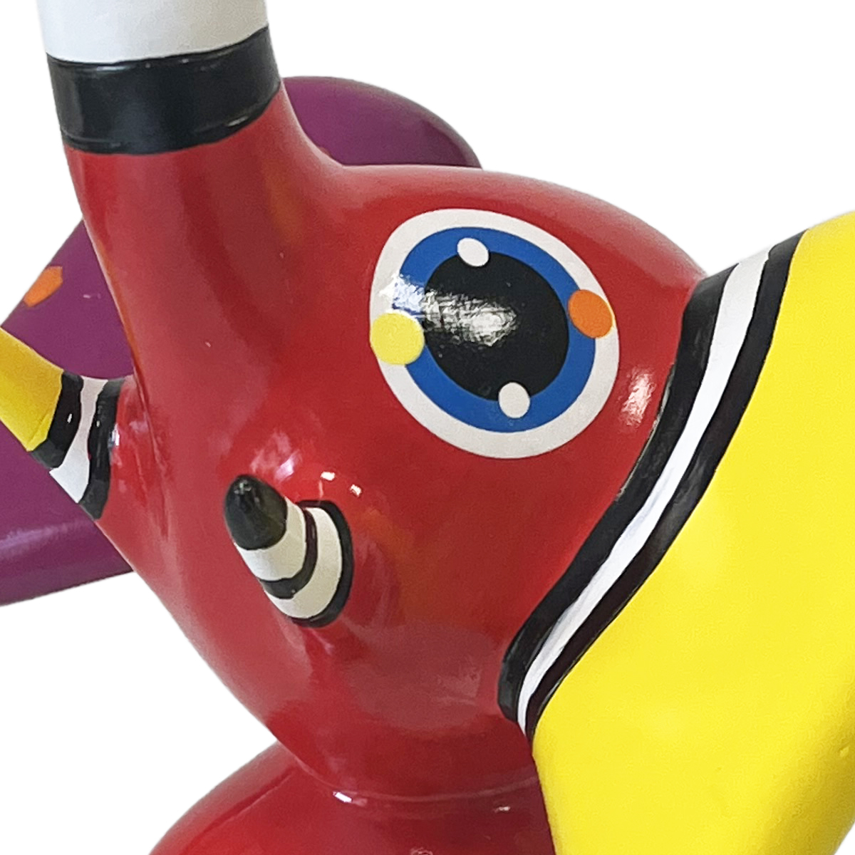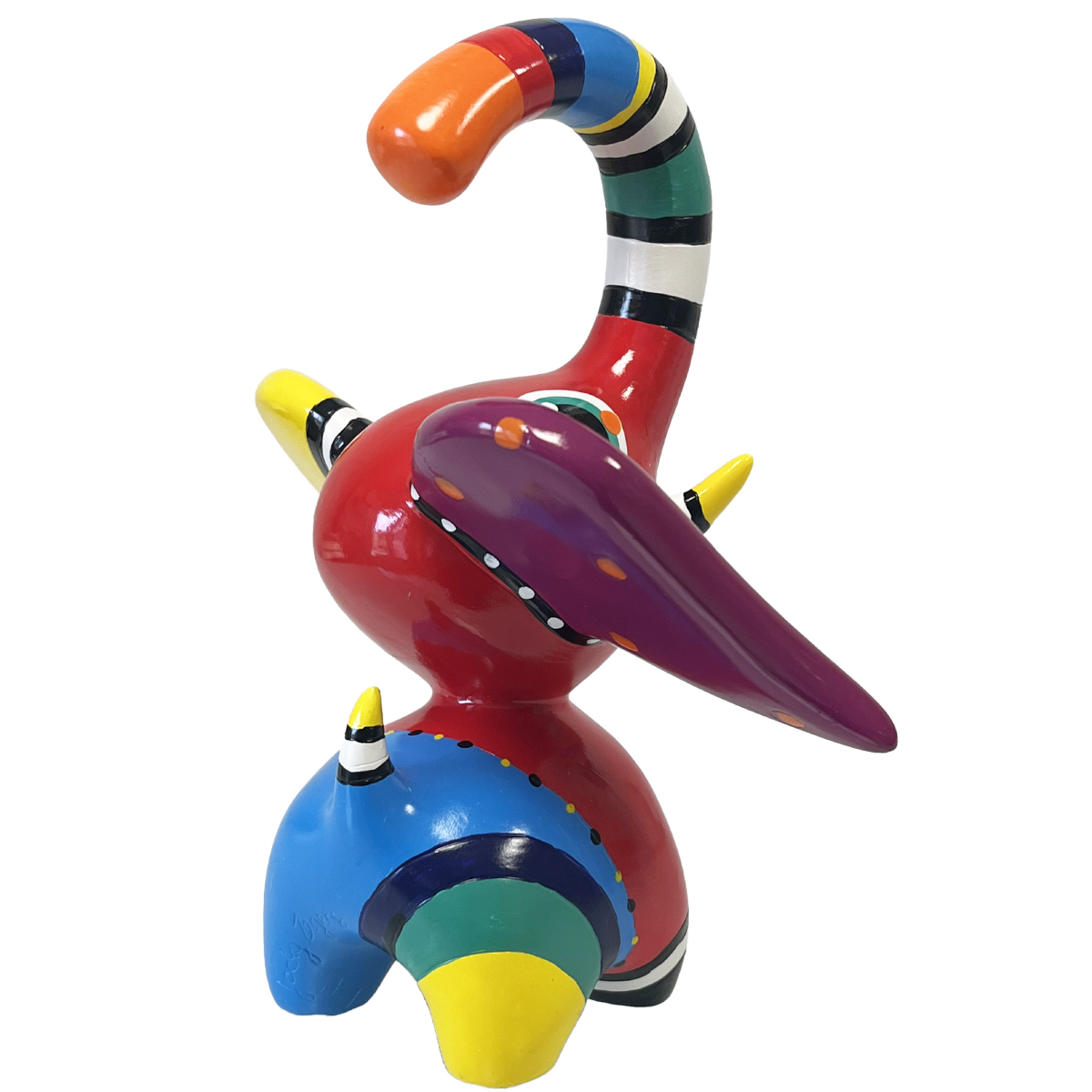 Figurine Hugo l’Éléphant par l'artiste Jacky Zegers 22 cm Licence : Jacky Zegers Titre : Lito l’Éléphant Matière : Résine Dimensions : Hauteur 22 cm - Largeur 18 cm - Profondeur 11 cm Livrée en boite cadeau Spécificités : Jacky Zegers (1972) vit et travaille à Arnhem (NL). Elle est essentiellement active dans la sculpture et la peinture. Professeur de mathématique, elle a peu à peu compris que sa vie ne pouvait plus se résumer à des formules et des chiffres. Elle prit en 2006 la décision d’écouter la voix de son cœur et de devenir artiste. Autodidacte, elle puise son inspiration dans la nature. La symétrie et les motifs qu’elle y trouve occupent une place privilégiée dans son œuvre. Elle ne peut pas cacher son amour pour les couleurs claires et les formes exagérées. Son œuvre rayonne d’optimisme est c'est exactement ce qu’elle souhaite. Elle voudrait que le public s’arrête quelques instant et profite tout simplement du moment. Elle souhaite attirer l’attention sur la beauté et l’insouciance des choses de la vie. La vie est faite pour prendre du plaisir, pour aimer et profiter. Des autres humains et des animaux. Et cela se remarque dans son art, qui nous montre et nous faut sentir, avec un clin d'œil, à quel point la vie est belle.