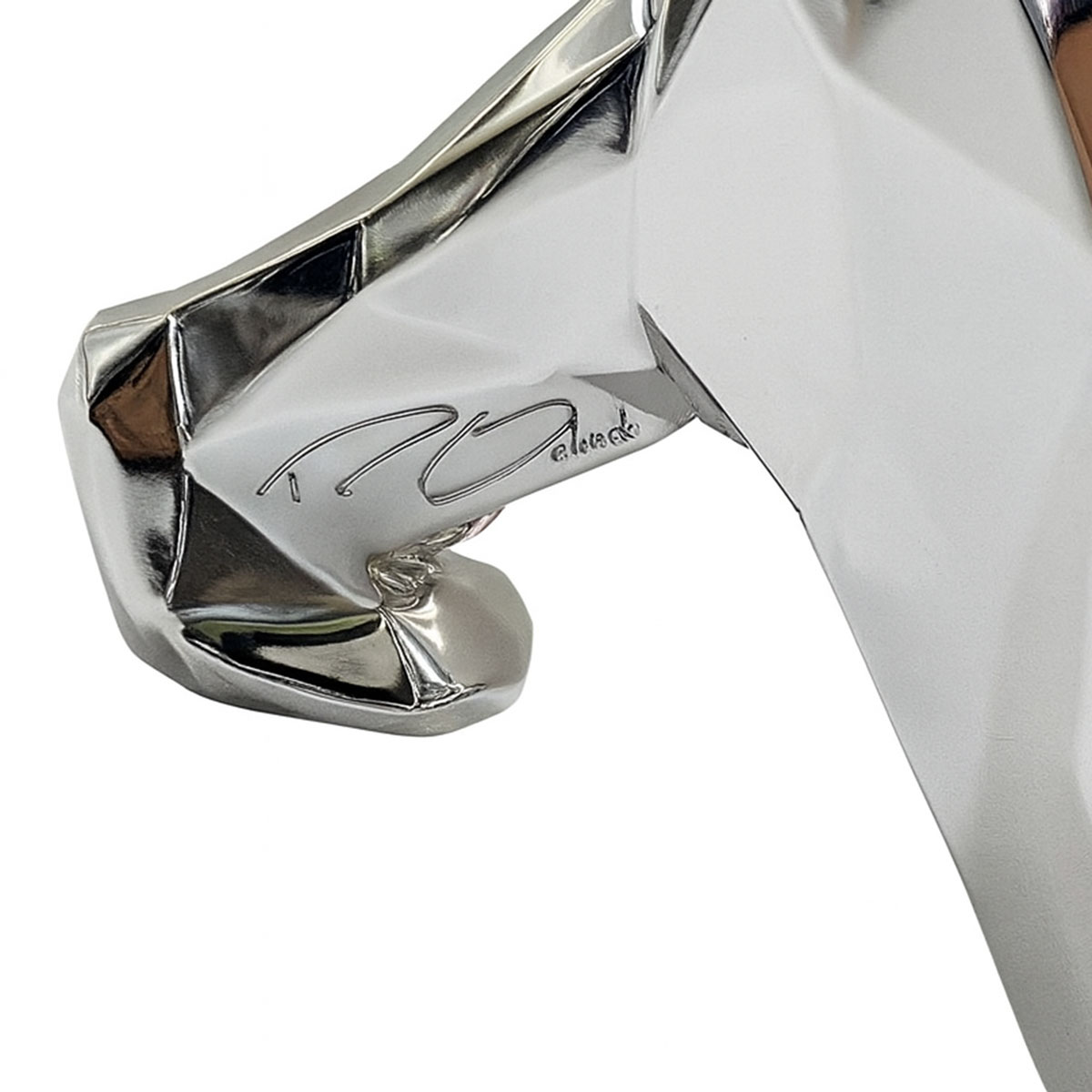 Sous sa finition argentée éclatante, l’ours arbore les facettes anguleuses caractéristiques de Richard Orlinski. Majestueux et intemporel, il symbolise à la fois puissance et élégance, un hommage vibrant au bestiaire artistique revisité avec audace.