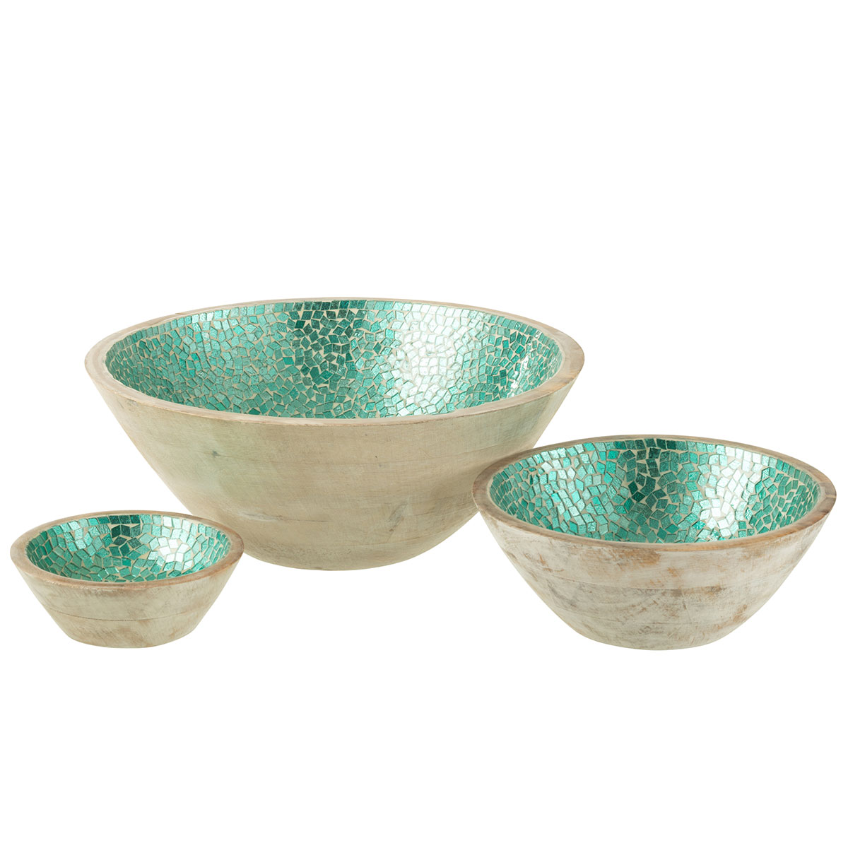Grand saladier mosaïques vertes en bois de manguier