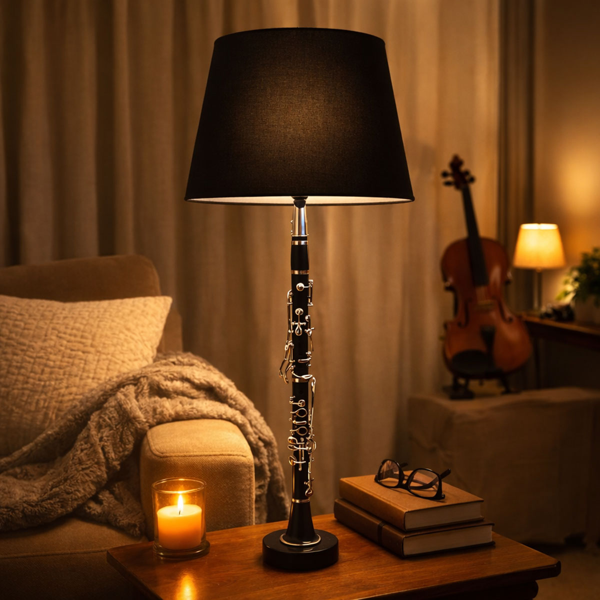 🎶 Lampe clarinette véritable 90 cm 🧵 Fabricant : Trade Winds 📏 Dimensions totales : Hauteur 90 cm – Diamètre abat-jour 35 cm – Instrument : 65 cm ⚖️ Base : Diamètre 13 cm 🪶 Abat-jour : Diamètre 35 cm × Hauteur 23 cm 🌳 Matière principale : véritable clarinette réformée montée en lampe 🪨 Pied : granite noir 🎨 Couleur : noir et métal argenté – abat-jour noir Cette lampe originale est réalisée à partir d’une véritable clarinette transformée en luminaire décoratif élégant et plein de caractère. Elle apporte une touche musicale raffinée et artistique à votre intérieur. L’abat-jour noir diffuse une lumière douce et chaleureuse idéale pour créer une ambiance cosy dans un salon, un bureau ou une pièce dédiée à la musique. Chaque pièce est unique : de légères variations peuvent apparaître par rapport au visuel, renforçant l’authenticité et le charme artisanal de cette création signée Trade Winds. Mots clés : lampe clarinette, lampe instrument musique, lampe musicale design, luminaire original, décoration musique, lampe salon, lampe bureau, lampe artisanale, lampe Trade Winds, objet déco musical
