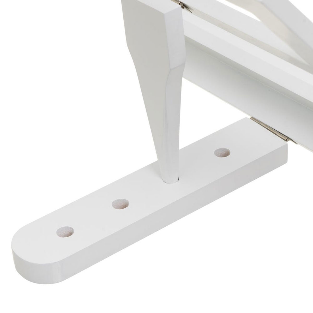 Lutrin de cuisine ou de lecture en bois blanc Licence : Rétro Matière : Bois de pin Couleur dominante : Blanc Dimensions plié : Hauteur 24 cm - Largeur 30 cm - Profondeur 5 cm Dimensions déplié : Hauteur 24 cm - Largeur 30 cm - Profondeur 24 cm