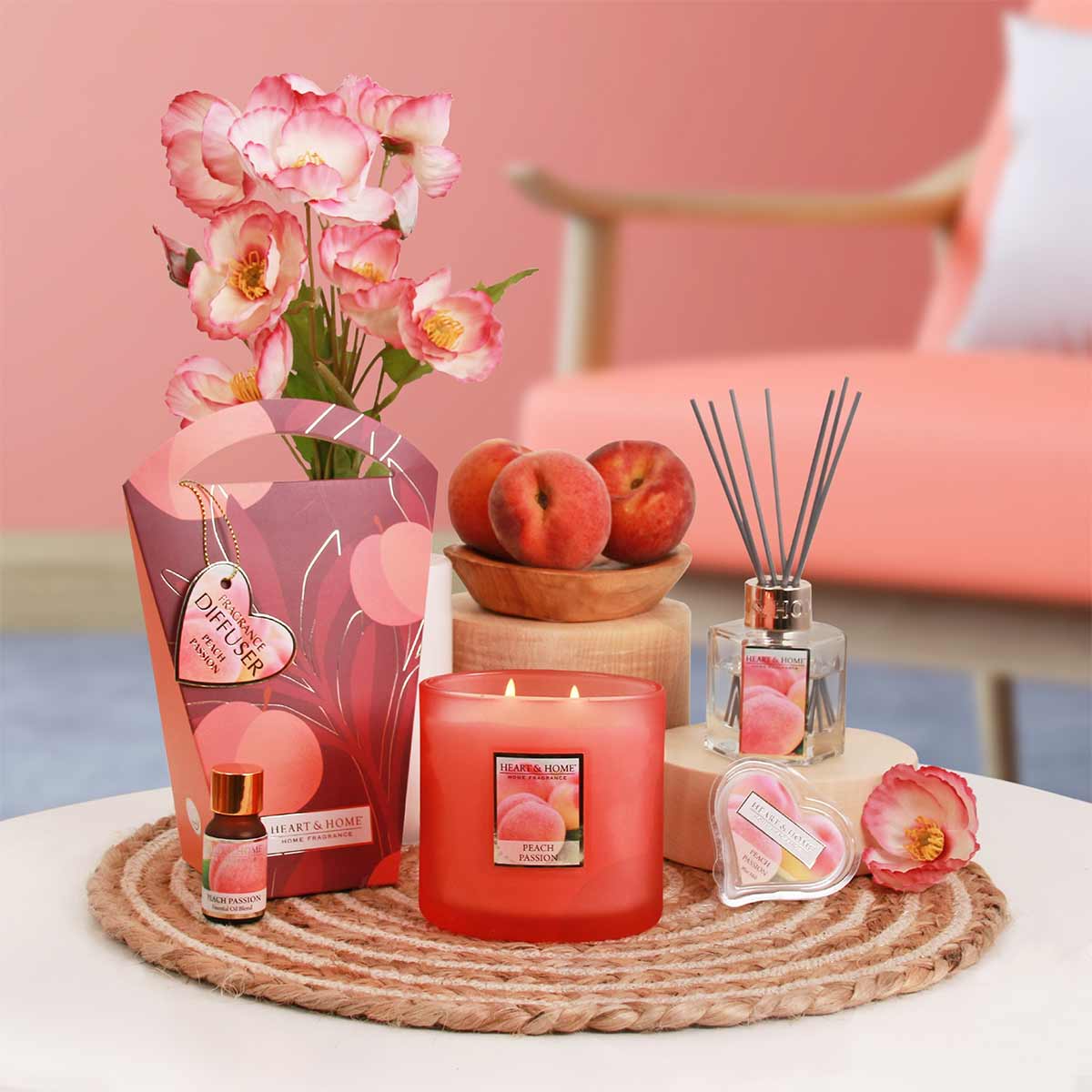 Mélange d'huiles essentielles Heart and Home Pêche Passion Licence : Heart and Home Contenance : 10 ml Senteur : Pêche Passion Un parfum de pêche fraîchement pressée et agrumes juteux, associés à des fleurs délicates, un soupçon de bergamote fraîche et un soupçon de musc. Notes de tête : Mandarine Notes de coeur : Pêche Notes de fond : Musc Notes de tête : Vanille Les huiles essentielles sont depuis longtemps reconnues pour leurs bienfaits thérapeutiques. Les mélanges d'huiles essentielles Heart and home contiennent des extraits de fleurs et de plantes extrêmement concentrés. Utilisé avec le diffuseur à ultrasons pour une expérience de parfum ultime. Le diffuseur silencieux diffuse doucement et instantanément une fine vapeur dans l'air pour que vous la savouriez.