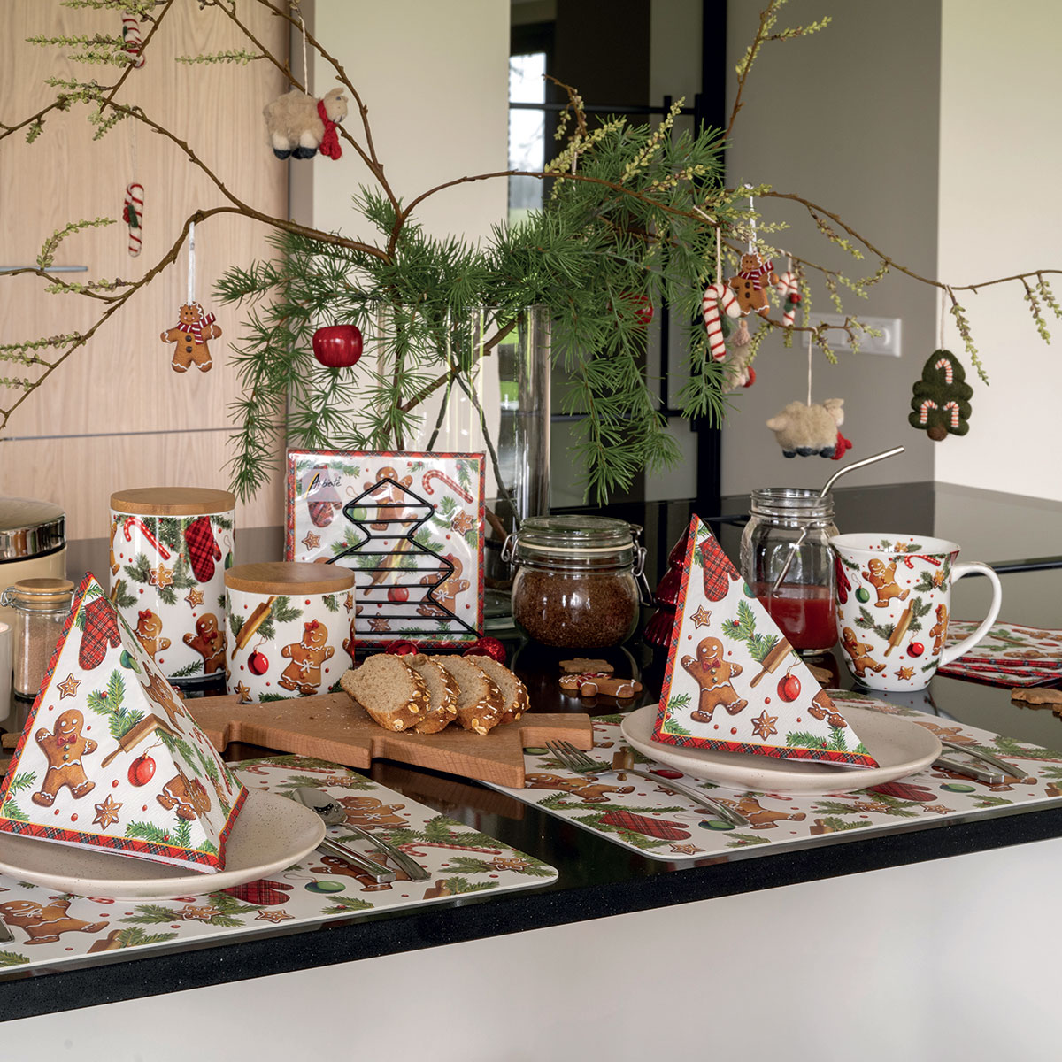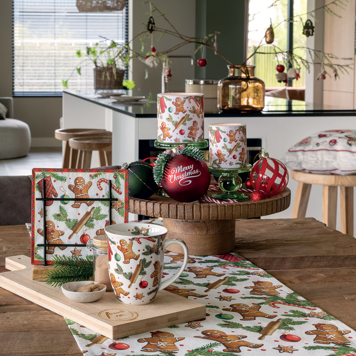 🍪 Mug en porcelaine fine – Biscuits pain d’épices et déco de Noël Marque : Ambiente Matière : Porcelaine fine Dimensions : Hauteur 11 cm × Diamètre 10 cm Contenance : 0,40 L Couleur dominante : Blanc, vert sapin, rouge et brun Ce mug en porcelaine fine décline tout l’esprit de Noël avec ses motifs de petits personnages en pain d’épices, branches de sapin, cannes de sucre et décorations festives. Une ambiance chaleureuse et gourmande qui invite instantanément à savourer un chocolat chaud, un thé parfumé ou un café réconfortant. Sa porcelaine fine lui apporte une légèreté agréable en main, tout en garantissant une très belle qualité d’impression. Les couleurs brillantes et les détails soignés en font un mug idéal pour la période des fêtes, mais aussi un bel objet déco dans la cuisine. ❓ Questions utiles 🎄 Pourquoi ce motif plaît-il autant ? Parce qu’il mêle tradition, gourmandise et ambiance festive : le combo parfait pour instaurer une atmosphère chaleureuse. 🍵 Est-il agréable à utiliser au quotidien ? Oui, la porcelaine fine est légère, douce au toucher et conserve bien la chaleur. 🎁 Convient-il comme cadeau ? Absolument. Il est parfait pour un coffret gourmand, une petite attention pour un collègue ou un cadeau de table. 🏷️ mug Noël, porcelaine fine, mug pain d’épices, mug Ambiente, idée cadeau Noël, mug hot chocolate, déco festive, mug 0.4 L