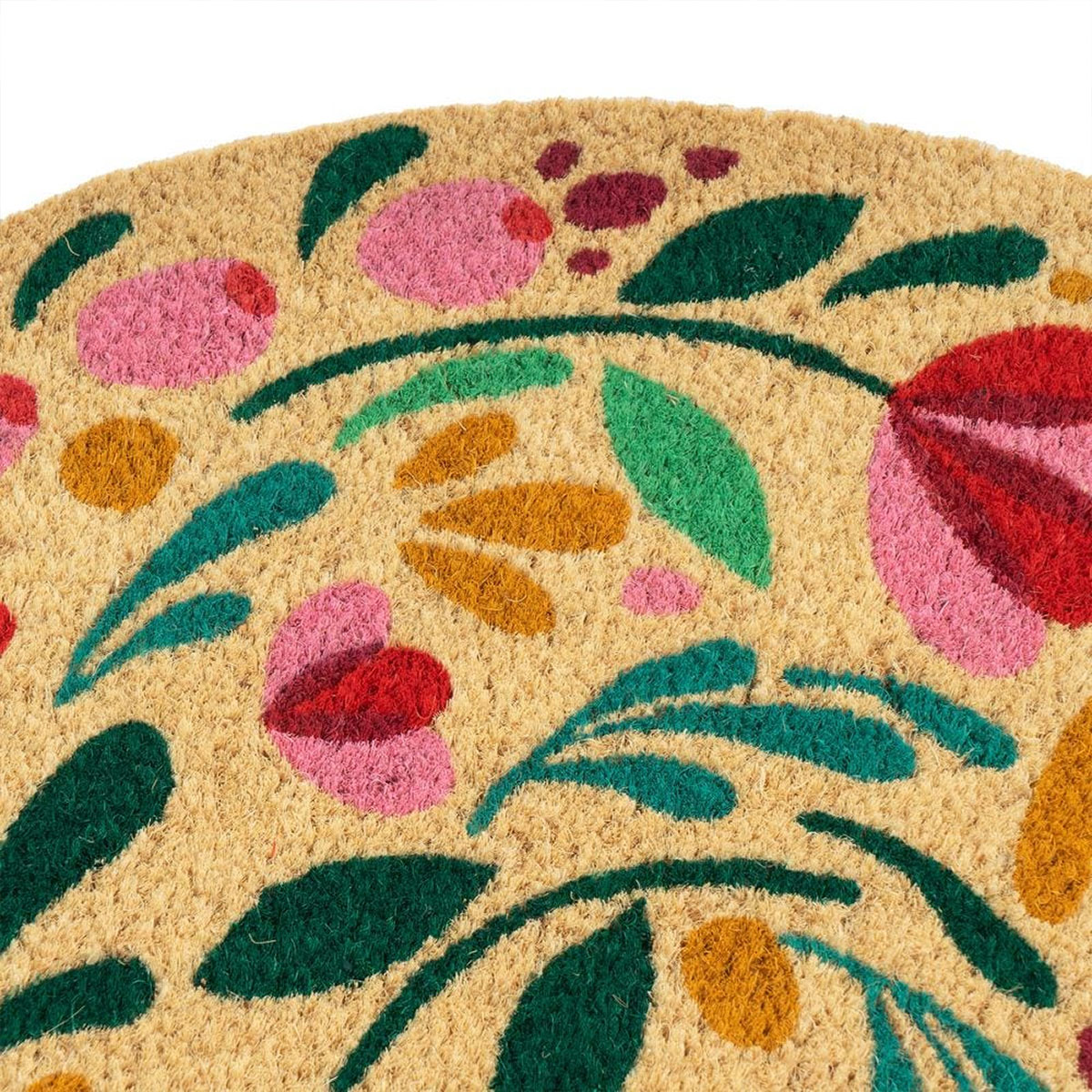 Dès le seuil franchi, ce paillasson demi-cercle déploie un véritable bouquet végétal. Ses fleurs aux teintes lumineuses et délicates semblent danser sur la fibre naturelle, offrant à votre maison un accueil joyeux, doux et plein de poésie. Une invitation à entrer dans un intérieur où règnent chaleur et bonne humeur.