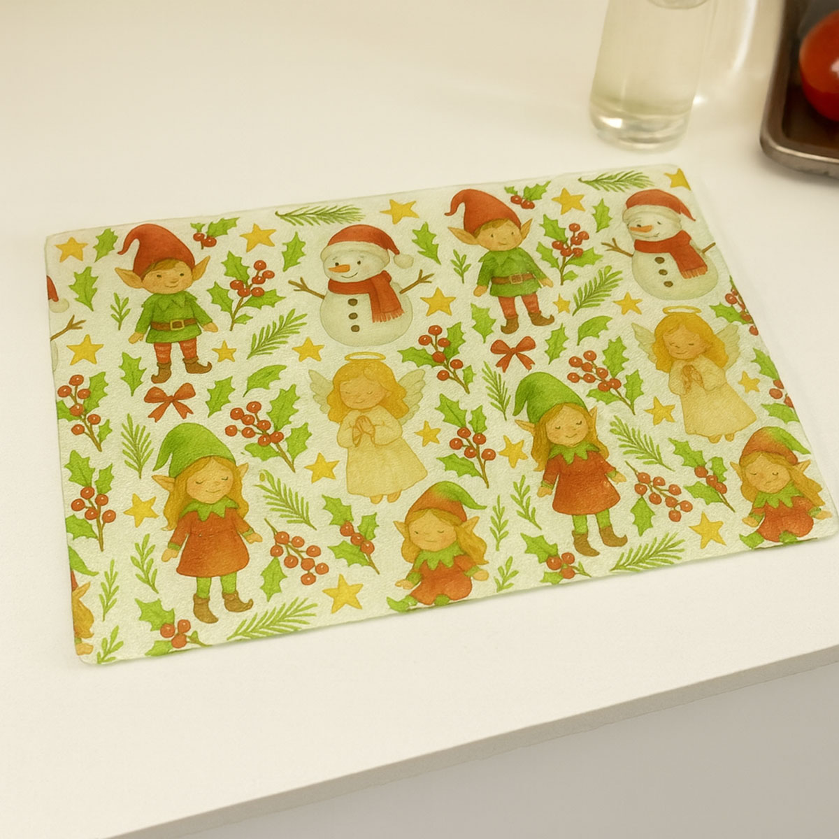 Planche à découper lutins et bonhommes de neige Fabricant : CBKreation Matière : Verre granité Dimensions : Largeur 28,5 cm × Profondeur 20 cm Couleurs dominantes : vert, rouge, blanc, or Imprimée en France ✨ Un univers joyeux et féerique Invitez la magie de Noël dans votre cuisine avec cette planche à découper en verre granité décorée de lutins malicieux, d’anges protecteurs et de joyeux bonhommes de neige. Ses couleurs vives et ses détails charmants créent une atmosphère chaleureuse et festive. 🔪 Pratique et hygiénique Réalisée en verre granité solide, elle offre une surface de découpe robuste et facile à nettoyer. Idéale pour préparer vos repas de fête ou servir vos gourmandises avec style. 🎁 Décoration et idée cadeau originale Au-delà de sa fonctionnalité, cette planche devient une pièce décorative qui se transforme en plateau festif pour vos apéritifs. Elle constitue aussi un cadeau de Noël parfait pour petits et grands amoureux de la magie des fêtes. 📌 À propos de CBKreation CBKreation est un fabricant français spécialisé dans les créations décoratives originales. Ses produits marient esthétique, qualité et praticité, pour apporter une touche unique et conviviale à chaque intérieur.