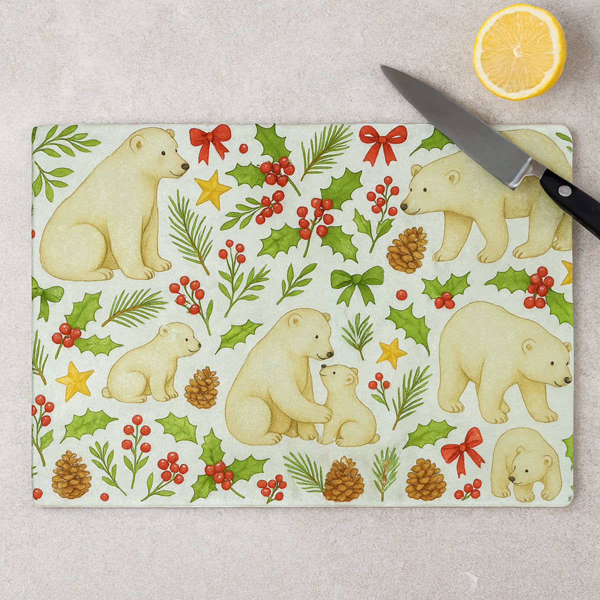Planche à découper ours de Noël Fabricant : CBKreation Matière : Verre granité Dimensions : Largeur 28,5 cm × Profondeur 20 cm Imprimée en France ❄️ Ambiance festive et chaleureuse Apportez la magie de Noël dans votre cuisine avec cette planche à découper en verre granité décorée de tendres ours polaires entourés de motifs festifs : houx, étoiles, pommes de pin et rubans rouges. Un design à la fois joyeux et poétique qui sublimera vos préparations culinaires et votre décoration de table. 🔪 Pratique et résistante Conçue en verre granité, cette planche est idéale pour découper viandes, légumes, fruits et pains sans abîmer vos surfaces. Sa surface hygiénique et facile à nettoyer en fait un accessoire indispensable au quotidien. 🎁 Une idée cadeau originale À offrir ou à s’offrir, cette planche à découper combine utilité et esthétique. Elle se transforme en véritable élément décoratif une fois posée sur le plan de travail ou présentée à table. 📌 À propos de CBKreation CBKreation est un fabricant français spécialisé dans la création d’articles déco et d’accessoires originaux. Chaque pièce est pensée pour allier praticité, esthétisme et qualité. En choisissant CBKreation, vous soutenez le savoir-faire local et apportez une touche unique à votre intérieur.