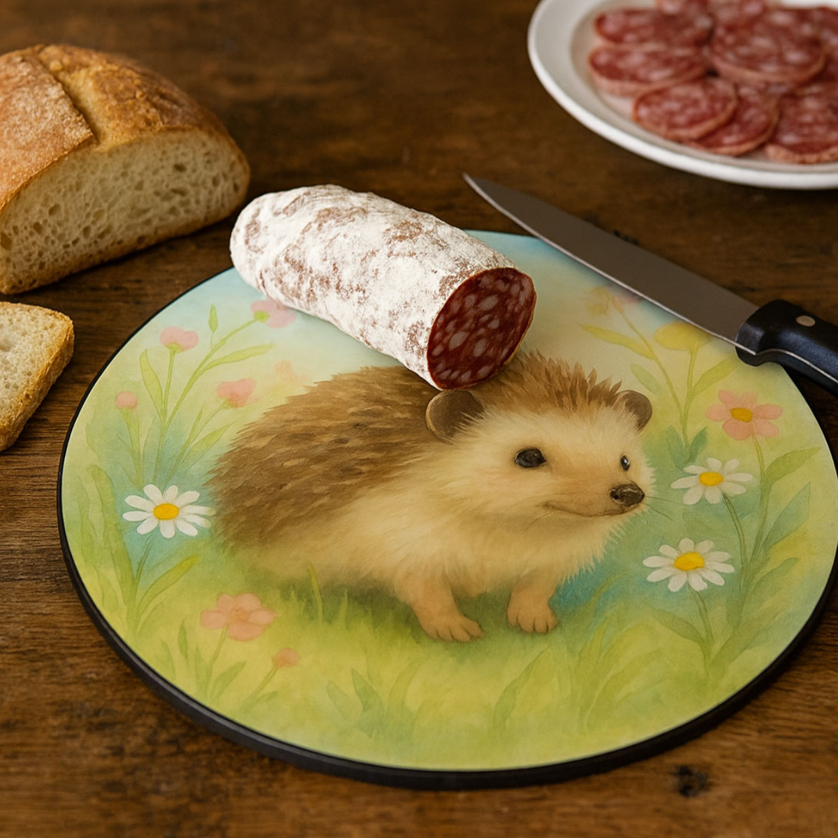 Planche à découper ronde en verre Hérisson – 30 cm – CBKréation