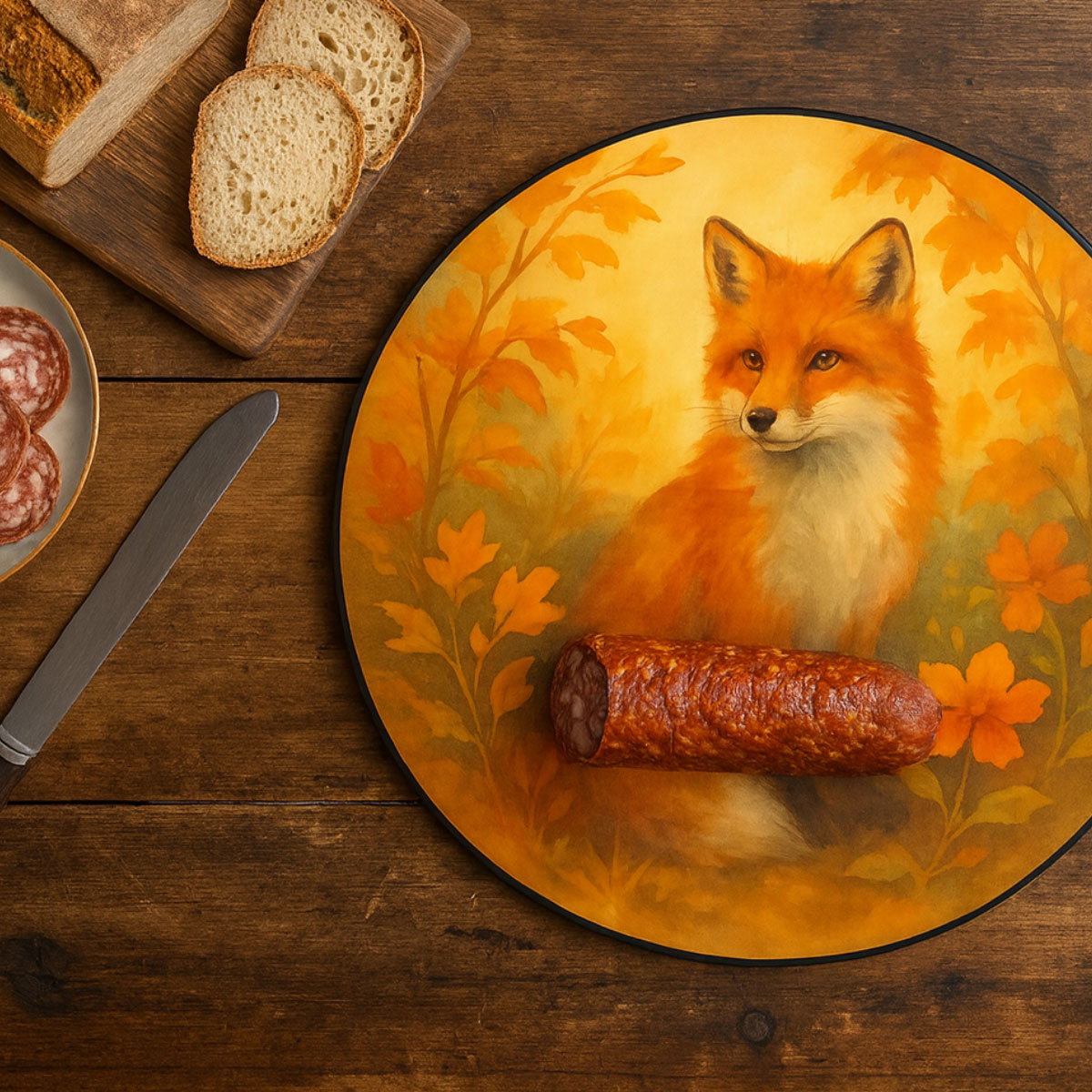 Planche à découper ronde en verre Renard automnal – 30 cm – CBKréation 🏷️ Fabricant : CBKréation 🧵 Matière : Verre 📏 Dimensions : 30 × 30 cm 🖨️ Impression : Réalisée en France 🎨 Couleur dominante : Tons automnaux, orange, brun et vert Cette planche à découper ronde en verre met en scène un élégant renard au cœur d’un décor automnal chaleureux, composé de feuillages et de couleurs douces. Symbole de nature et de liberté, le renard apporte une atmosphère accueillante et poétique à la cuisine. Fabriquée en verre résistant, elle offre une surface lisse, hygiénique et facile à nettoyer. Elle est idéale pour la découpe des aliments tout en protégeant efficacement le plan de travail. Résistante à la chaleur, elle peut également être utilisée comme sous-plat décoratif ou support de présentation pour fromages, gâteaux ou apéritifs. L’illustration est imprimée en France avec un soin particulier apporté aux détails et à la durabilité des couleurs. Cette création signée CBKréation allie fonctionnalité et esthétisme, et s’intègre parfaitement dans une cuisine au style naturel ou comme idée cadeau originale. Questions fréquentes • Peut-elle être utilisée comme sous-plat ? Oui, le verre résiste à la chaleur et convient parfaitement à cet usage. • Est-elle facile à entretenir ? Oui, un nettoyage à la main avec une éponge douce suffit. • Le motif est-il durable ? Oui, l’impression réalisée en France garantit un rendu de qualité et des couleurs durables. • Est-ce une bonne idée cadeau ? Oui, son univers automnal et naturel en fait un cadeau utile et décoratif. Mots-clés planche à découper verre, planche ronde cuisine, sous-plat en verre, renard décoratif, décoration cuisine nature, planche CBKréation, impression française, idée cadeau cuisine