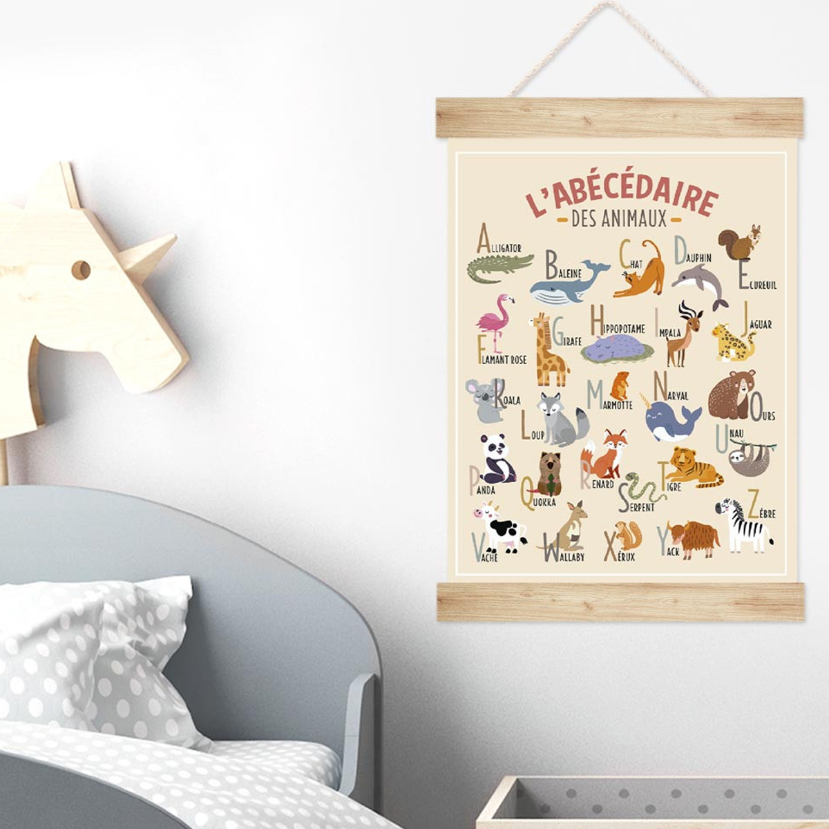 Plaque Kakemono en bois à suspendre Abécédaire Animaux
