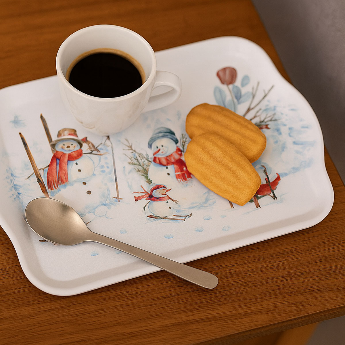 🎄 Réalisé en mélamine brillante, ce plateau allie résistance, légèreté et élégance. Son motif délicatement illustré invite à partager des moments de convivialité autour d’un chocolat chaud, d’un goûter d’hiver ou d’un café gourmand.