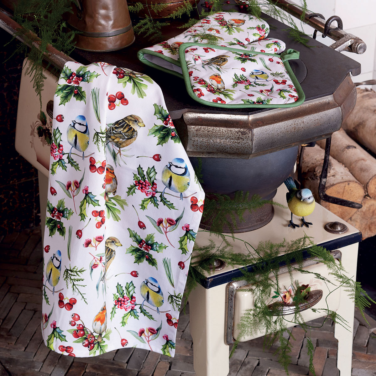 Torchon en coton oiseaux et baies 50 x 70 cm Fabricant : Ambiente Matière : 100% coton Dimensions : Hauteur 70 cm × Largeur 50 cm 🕊 Un motif naturel et poétique Ce torchon en coton illustre avec délicatesse des oiseaux d’hiver entourés de branches de houx et de baies rouges. Un design chaleureux qui apporte une touche festive et authentique à votre cuisine. 🍽 Pratique et élégant Grâce à sa taille de 50 × 70 cm, il est parfaitement adapté pour essuyer la vaisselle ou protéger vos mains. Sa composition 100% coton assure une absorption efficace et une utilisation durable au quotidien. 🎄 Un textile de fête décoratif Idéal pour compléter votre linge de cuisine, ce torchon est aussi beau qu’utile. Associé aux chemins de table et nappes de la même collection, il crée une ambiance harmonieuse et raffinée pour la période des fêtes. 🏡 Ambiente, l’art du détail Ambiente imagine des accessoires décoratifs qui allient qualité, praticité et esthétique. Avec ce torchon, la marque propose une pièce à la fois fonctionnelle et décorative qui sublimera vos instants du quotidien.